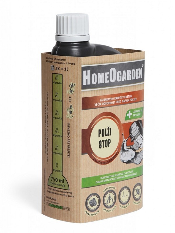 Opis: Naravno krepi rastline in s tem naravno veča odpornost rastlin pred vsemi vrstami polžev. Sredstvo odmerjamo v količini 250 ml na 10 l vode za 50 - 100 m2 ali 25 ml na 1 l vode za zalivanje lončnic, rastlin v koritih ali za uporabo na manjših površinah. Odmerite s pomočjo pokrovčka - 3 polni pokrovčki zadoščajo za 1 l pripravka. Odmerite z uporabo merilne skale odtisnjene ob strani na plastenki (odstranite kartonski ovoj). Vsaka črtica na merilni skali meri 125 ml, kar ustreza za pripravo 5 l pripravka. Plastenko s sredstvom dobro pretresemo. Najprej vlijemo sredstvo, nato dodamo vodo. Mešanico dodatno pretresemo, če curek vode ob dodajanju ni dovolj močen.
