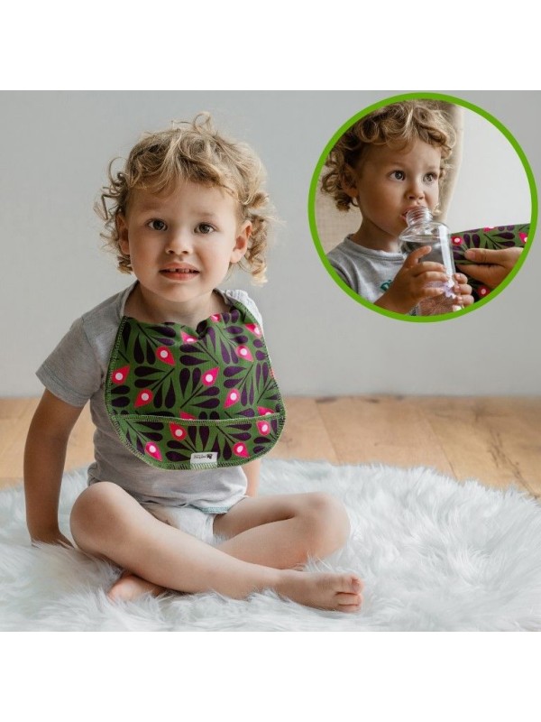 - lahko jo tudi zataknemo otroku za majico oz. bodi ali podržimo pod bradico, ko pije